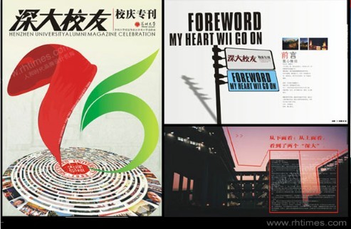 這個是人和時代專為深大校慶而設(shè)計的專刊封面和內(nèi)頁,可以看到這個設(shè)計是為深大周年校慶特意設(shè)計的刊物,風(fēng)格設(shè)計上是比較喜慶,信息等內(nèi)容也是很細(xì)致的,整體突出了深大對周年校慶的喜悅與熱愛。