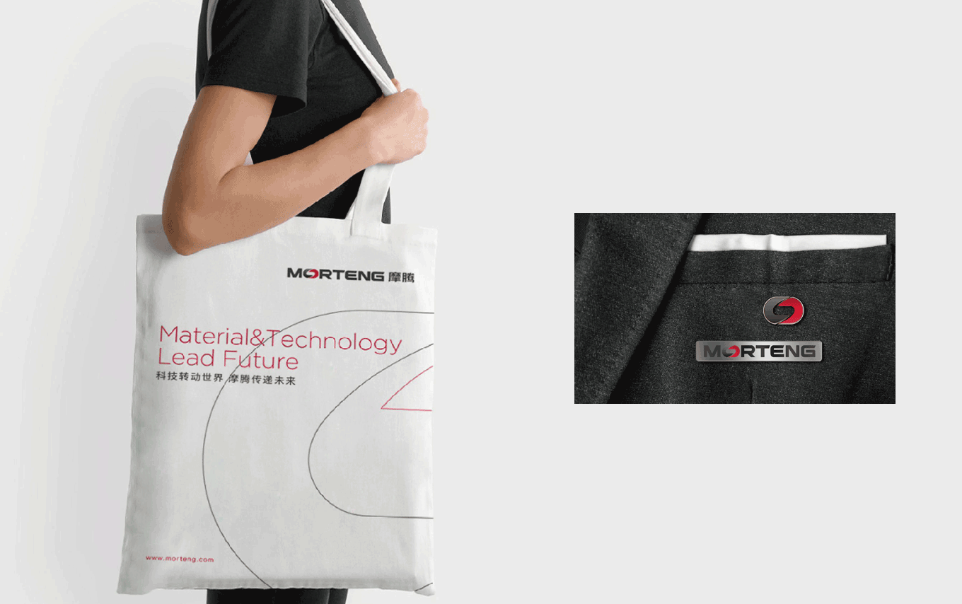 MORTENG 英文字體標(biāo)識(shí),將字母“O” 作為主要識(shí)別點(diǎn),形成了一個(gè)無(wú)限循環(huán)轉(zhuǎn)動(dòng)的環(huán)形,其不僅具有摩騰科技的產(chǎn)品屬性——象征滑環(huán)、碳刷等產(chǎn)品的運(yùn)作特性;其次,圖標(biāo)的負(fù)形也巧妙地形成了“能源符號(hào)” 的圖形感,象征著摩騰在風(fēng)電、傳動(dòng)、線纜等能源科技領(lǐng)域所具有的“無(wú)限能量”。在顏色上也選用“能量感” 極強(qiáng)的紅色作為主要識(shí)別色,使摩騰品牌在行業(yè)領(lǐng)域中脫穎而出。